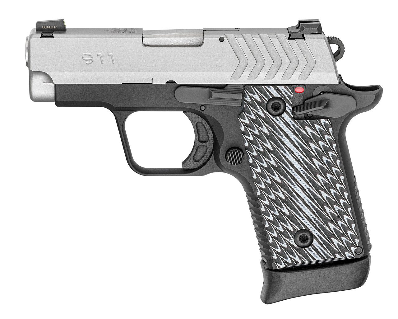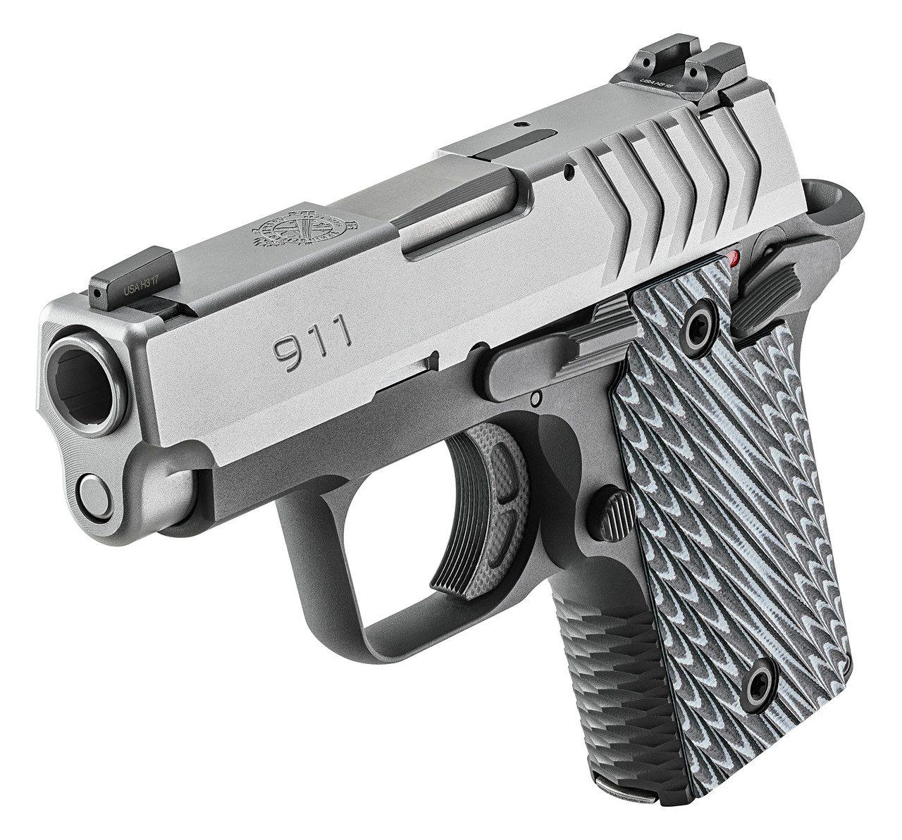 • Features: Hogue Thin-Line G10 grips, Octo-Grip texturing, and ambidextrous